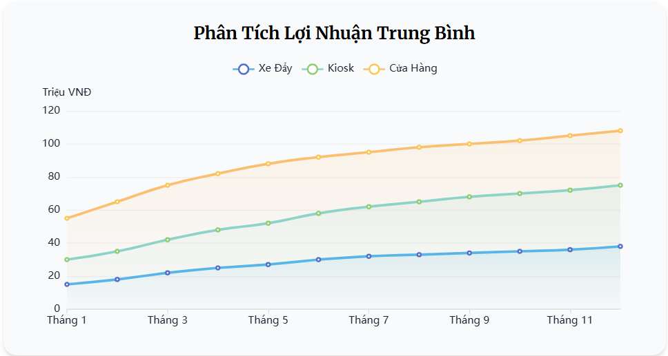 Mô hình xe đẩy và cửa hàng nhỏ giúp giảm thiểu chi phí ban đầu, cho phép bạn nhanh chóng hoàn vốn và sinh lời.